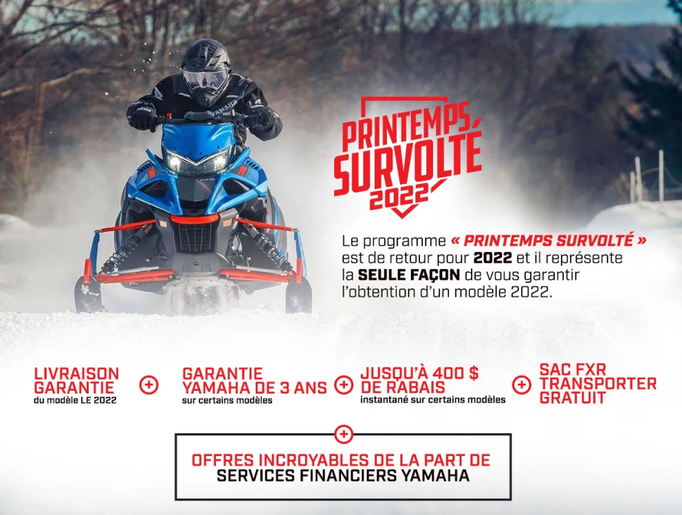 2022 amène son lot de nouveautés dans les motoneiges de sentier chez Yamaha, spécialement en termes de Yamaha à 4 temps. Ces motoneiges de sentier sont durables, robustes et fiables. SM Sport vous propose plusieurs modèles qui rendront vos randonnées et vos longues distances sécuritaires et surtout, confortables!