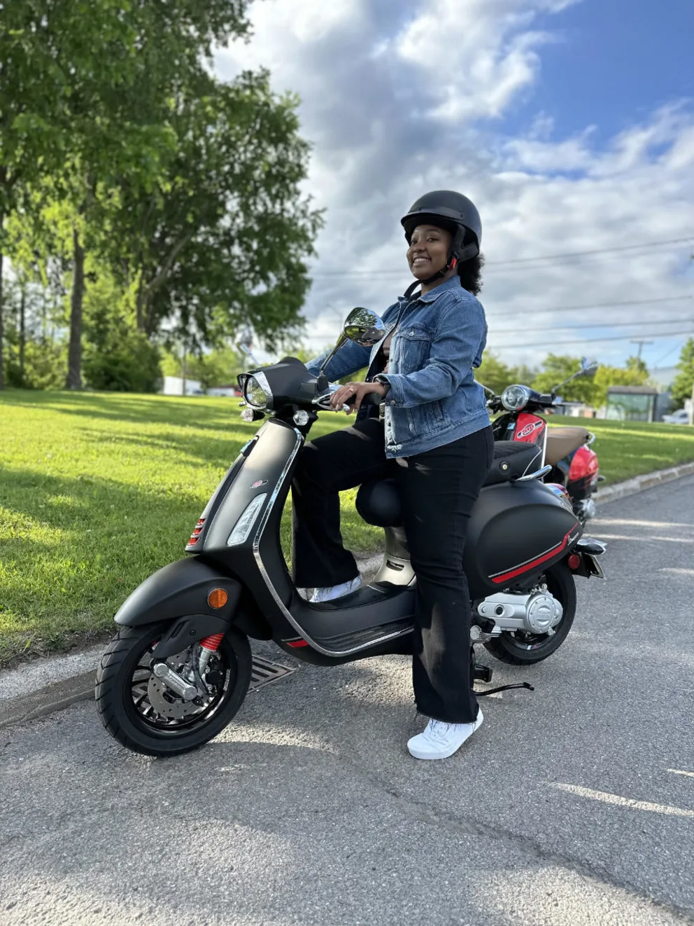 De plus, conduire au centre-ville en voiture, c’est rarement agréable. Souvent, le trafic et le manque de places de stationnement rendent la conduite stressante. Nous avions donc hâte de redécouvrir la conduite en ville sur un tout autre type de véhicule, et nous n’avons pas été déçues ! Avec la Vespa, chaque déplacement devient une véritable partie de plaisir. Sa petite taille et sa maniabilité en font le moyen de transport idéal pour se faufiler dans le trafic et éviter les encombrements.