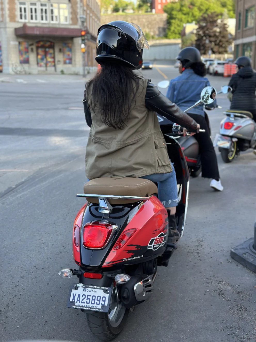 Apprendre à conduire ces scooters emblématiques est une partie intégrante de l’expérience ! Après avoir rapidement compris leur fonctionnement (un merci spécial à Dave et Louis-Philippe qui ont pris le temps de tout nous montrer), nous étions prêtes à partir pour une virée à Québec.