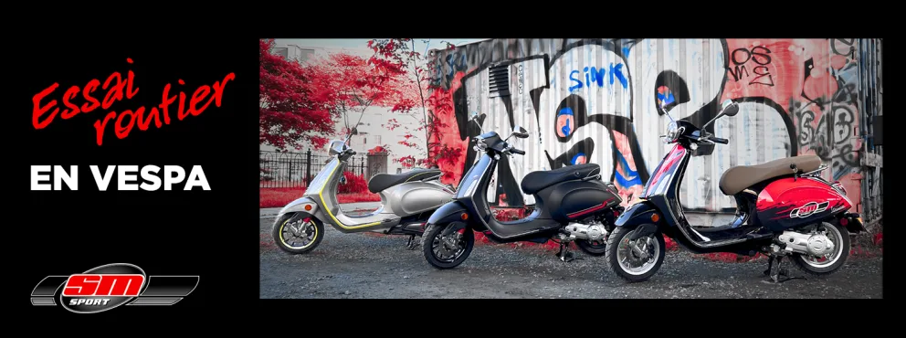 Lors de notre dernière visite chez SM Sport, nous avons eu la chance de découvrir leur inventaire, mais pas seulement : ce fut aussi l’occasion pour nous de mettre les scooters Vespa au banc d’essai ! Après tout, on s’est dit que c’était la meilleure façon pour nous de comprendre l’expérience SM Sport et l’essence même de la Vespa.